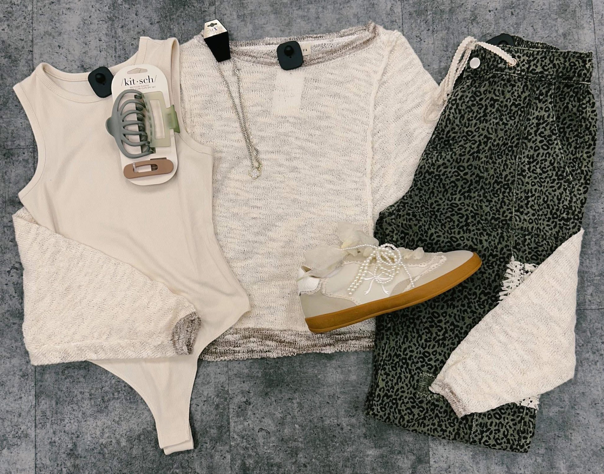 The Wild Sage Lounge Pants bring together effortless comfort and a touch of boho wildness. Featuring a soft sage-green leopard print, these pants are detailed with crochet patch accents that add the perfect Western-Boho charm. With an adjustable drawstring waist and relaxed fit, they’re perfect for cozy days, boutique runs, or pairing with a neutral tank and denim jacket for that laid-back yet styled look.
